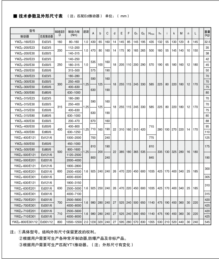 電力液壓制動(dòng)器是使機(jī)械中的運(yùn)動(dòng)件停止或減速的機(jī)械零件。俗稱(chēng)剎車(chē)、閘。制動(dòng)器主要由制架、制動(dòng)件和操縱裝置等組成。有些制動(dòng)器還裝有制動(dòng)件間隙的自動(dòng)調(diào)整裝置。為了減小制動(dòng)力矩和結(jié)構(gòu)寸, 制動(dòng)器通常裝在設(shè)備的高速軸上,但對(duì)性要求較高的大型設(shè)備(如礦井提升機(jī)、電梯等)則應(yīng)裝在靠近設(shè)備工作部分的低速軸上。有些制動(dòng)器已標(biāo)準(zhǔn)化和系列化,工廠制造以供選用。